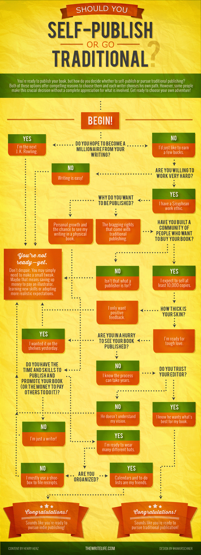 The Write Life publishes an infographic to help authors decide whether they should pursue self-publishing or follow the path of traditional publishing.