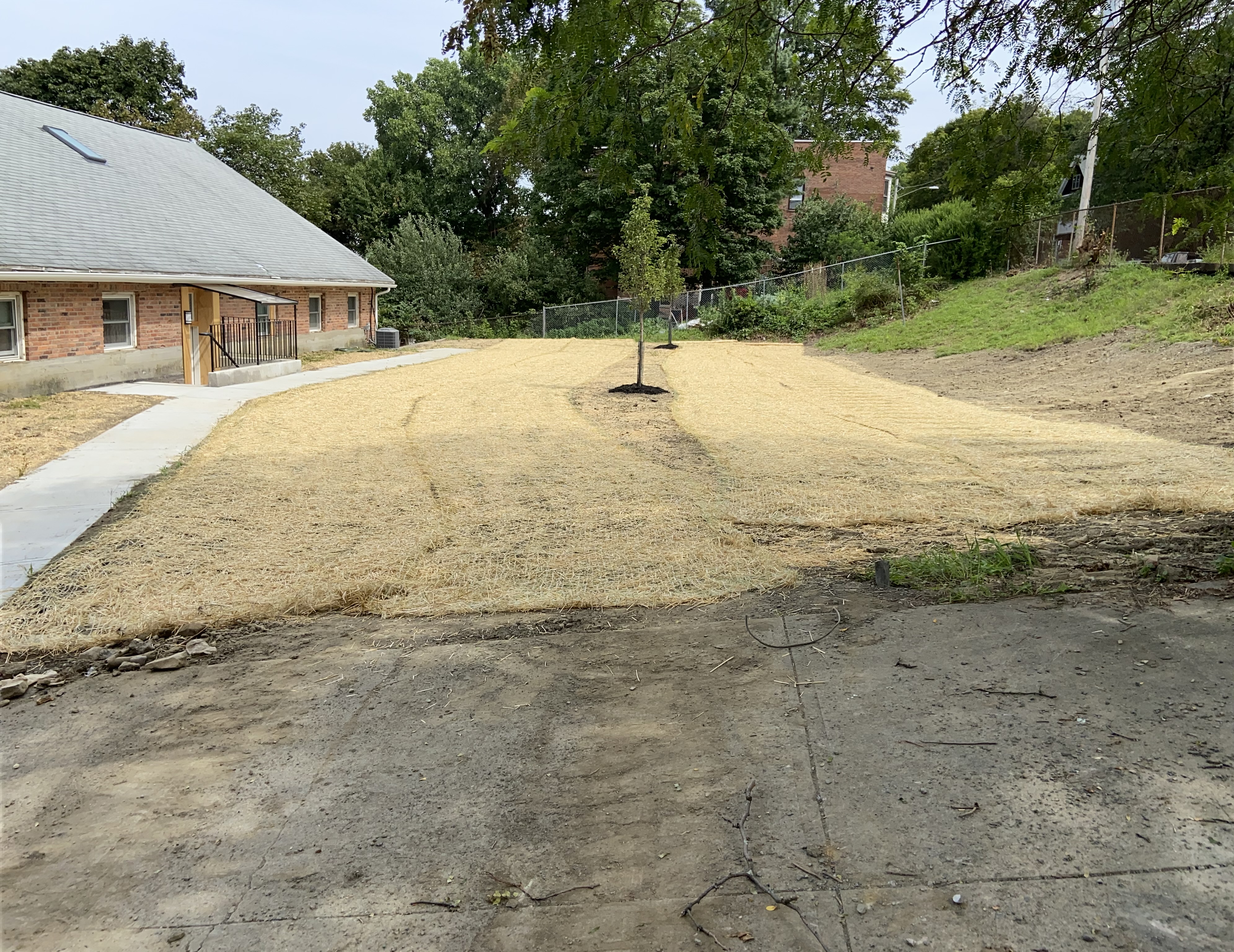 Green space behind former church hall (in progress) – will include barbecue equipment, trees, grass, benches: